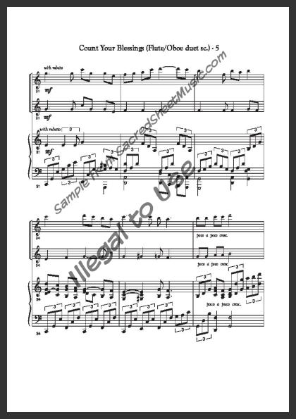 Includes the full score with piano accompaniment and separate duet parts for Flute I and Oboe II.