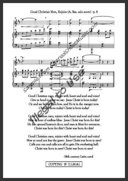 Alto Saxophone solo with piano accompaniment. An uplifting arrangement of this popular Christmas carol declaring ‘Jesus Christ is born today!’ Moderate level of difficulty.