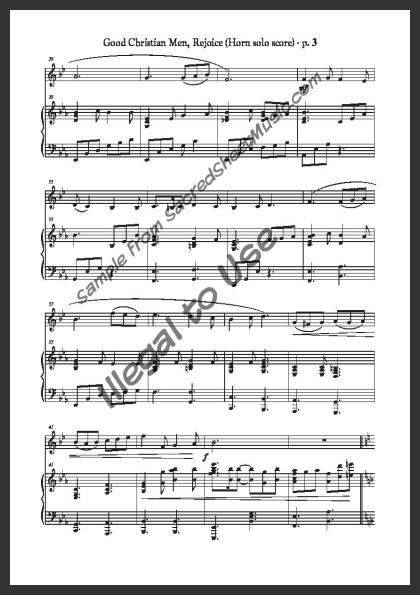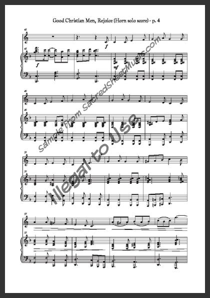 Horn solo with piano accompaniment. An uplifting arrangement of this popular Christmas carol declaring ‘Jesus Christ is born today!’ Moderate level of difficulty.