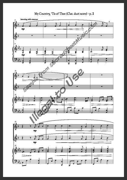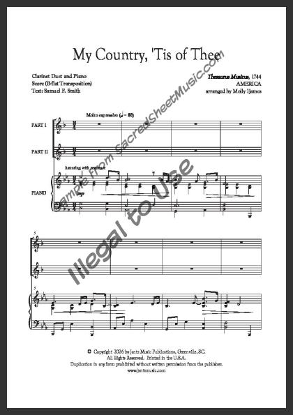Clarinet duet with piano accompaniment. A powerful, fresh setting of this popular American patriotic song – “America.”. Moderately level of difficulty.