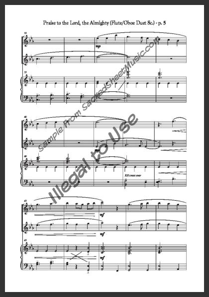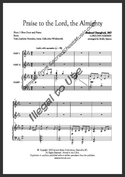 Mixed woodwind duet for Flute and Oboe with piano accompaniment. A fresh, energetic arrangement that gives praise to our Almighty King of creation. Moderate level of difficulty.