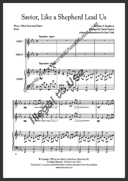 Includes the full score with piano accompaniment and separate duet parts for Flute I and Oboe II.