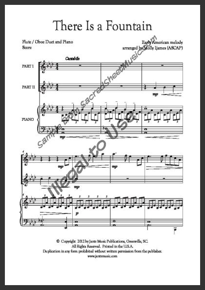 Includes the full score with piano accompaniment and separate duet parts for Flute I and Oboe II.