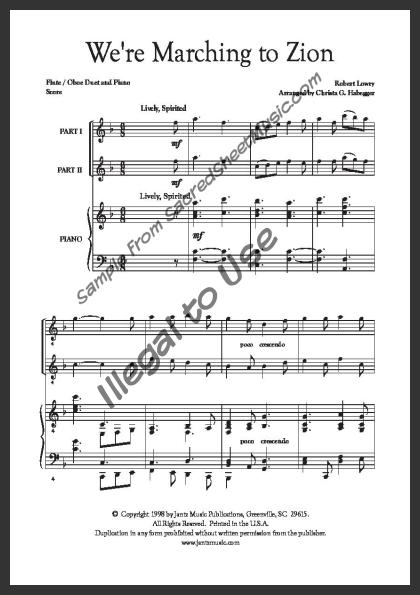 Includes the full score with piano accompaniment and separate duet parts for Flute I and Oboe II.