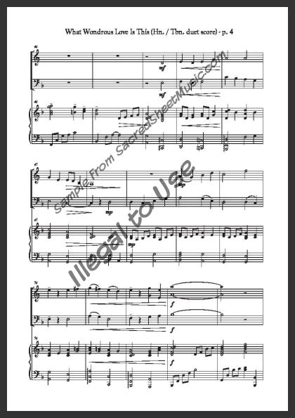 Mixed brass duet with piano accompaniment for horn and trombone. A beautiful, flowing arrangement of this older camp meeting song that expresses the wonder of God’s love for us. Moderate level of difficulty.