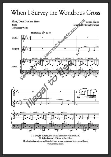 Mixed woodwind duet for Flute and Oboe with piano accompaniment. A beautiful, moving setting of this popular Easter favorite – “God forbid that I should glory, save in the cross of our Lord Jesus Christ.”