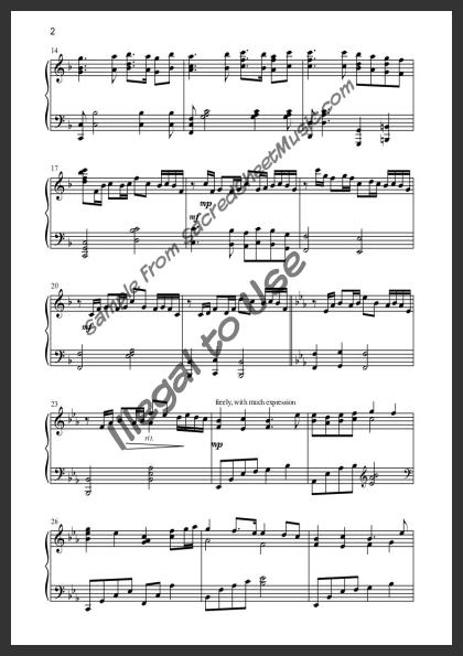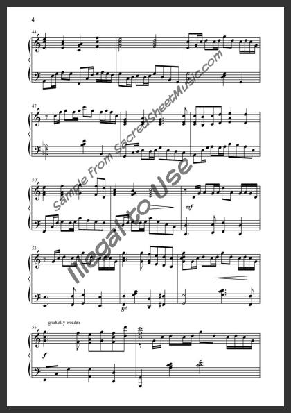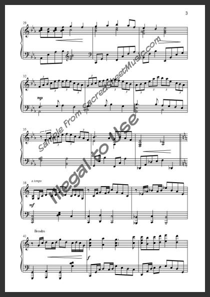This is a vibrant piece with a trumpet-like motif, which is featured in the first and last verses. This is suitable for the moderately advanced pianist.