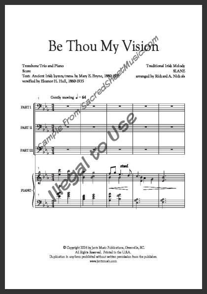 Includes the full score, piano accompaniment and parts 1-3 for Trombone. Alternate parts include parts 1 & 2 for Horn in F or T.C. Euphonium and part 3 for T.C. Euphonium.