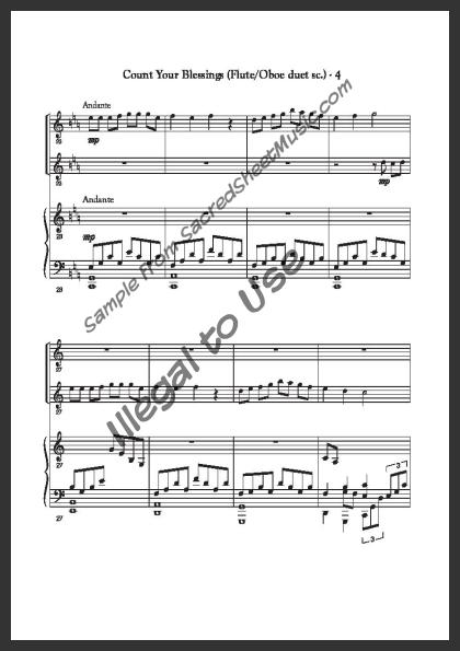 Includes the full score with piano accompaniment and separate duet parts for Flute I and Oboe II.