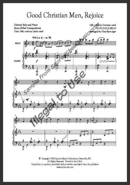 Clarinet solo with piano accompaniment. An uplifting arrangement of this popular Christmas carol declaring ‘Jesus Christ is born today!’ Moderate level of difficulty.