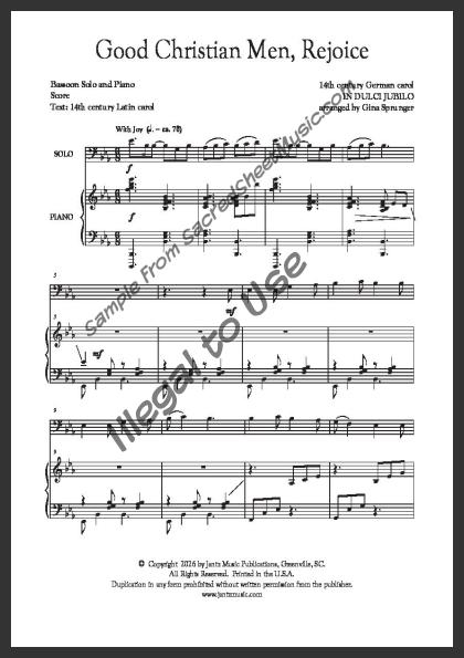 Bassoon solo with piano accompaniment. An uplifting arrangement of this popular Christmas carol declaring ‘Jesus Christ is born today!’ Moderate level of difficulty.