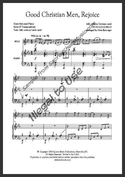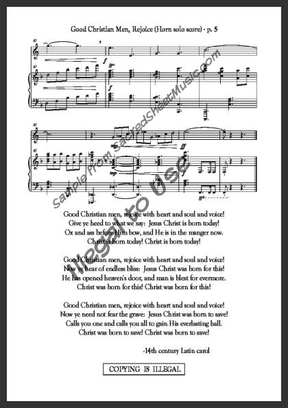 Horn solo with piano accompaniment. An uplifting arrangement of this popular Christmas carol declaring ‘Jesus Christ is born today!’ Moderate level of difficulty.