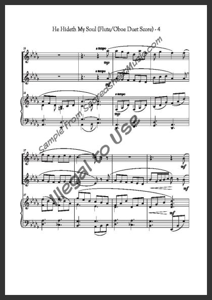 Includes the full score with piano accompaniment and separate duet parts for Flute I and Oboe II.
