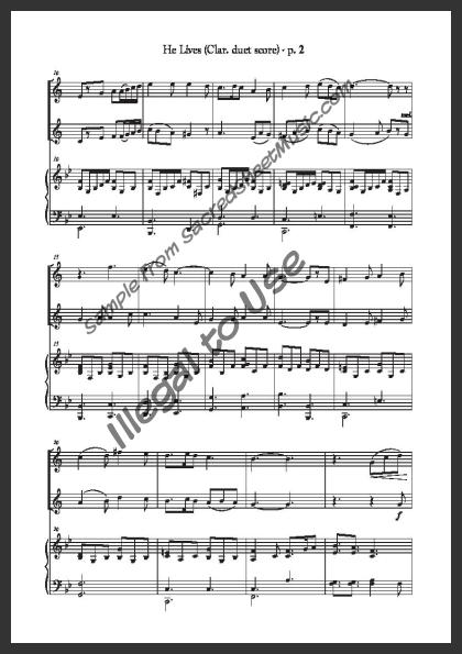 Clarinet duet with piano accompaniment A bright, uplifting arrangement that celebrates Christ’s resurrection – ‘I serve a risen Savior.’. Moderately Advanced level of difficulty.