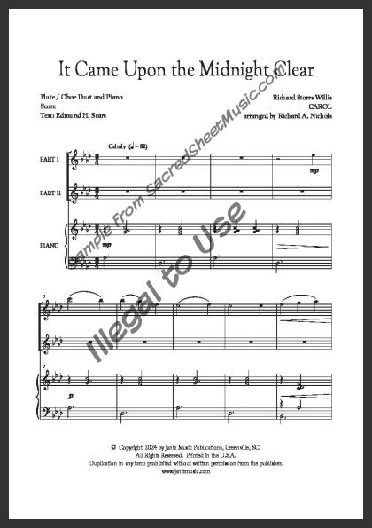 Mixed woodwind duet for Flute and Oboe with piano accompaniment. A simple, beautiful arrangement of this Christmas favorite – ‘Peace on the earth, good will to men, from heav’n’s all gracious King.’ Moderate level of difficulty.