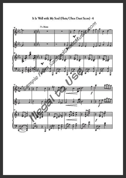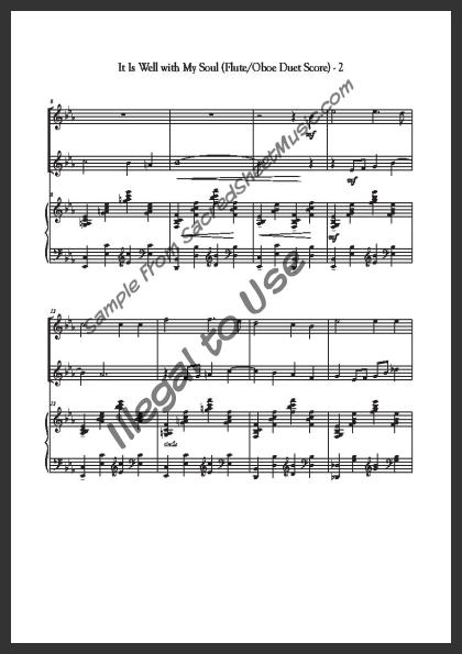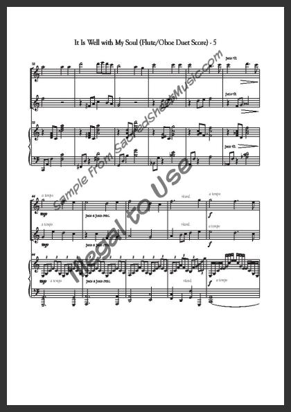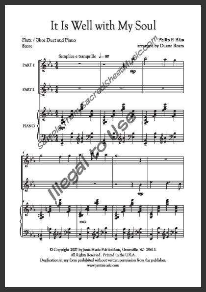 Mixed woodwind duet for Flute and Oboe with piano accompaniment. A beautiful, flowing arrangement of this hymn of testimony of the peace and joy that Christ can give our soul. Moderately advanced level of difficulty.