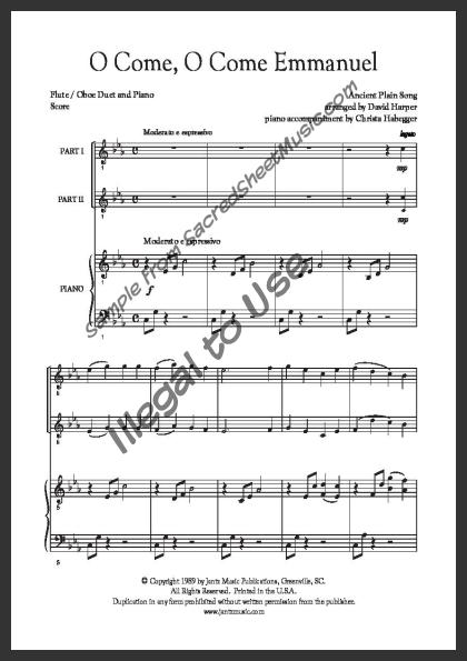 Mixed woodwind duet for Flute and Oboe with piano accompaniment. A simple, beautiful arrangement of this great Christmas hymn – ‘Rejoice! Rejoice! Emmanuel shall come to Thee, O Israel!’ Moderately Easy level of difficulty.