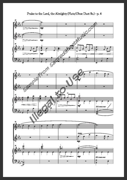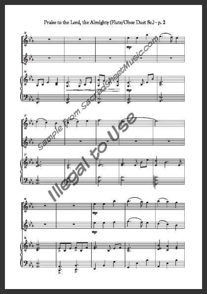 Mixed woodwind duet for Flute and Oboe with piano accompaniment. A fresh, energetic arrangement that gives praise to our Almighty King of creation. Moderate level of difficulty.
