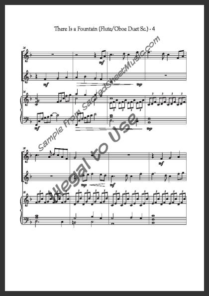 Includes the full score with piano accompaniment and separate duet parts for Flute I and Oboe II.